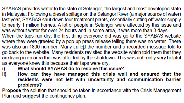 Solved Syabas Provides Water To The State Of Selangor The Chegg Com