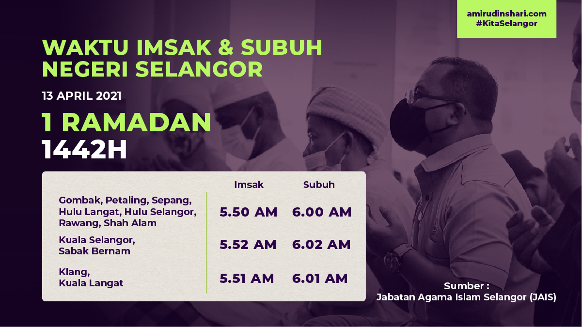 Amirudin Shari On Twitter Berikut Adalah Waktu Imsak Dan Solat Subuh Pada Hari Esok Untuk Semua Kawasan Di Selangor Bertarikh 13 April 2021 Bersamaan 1 Ramadan 1442h Selamat Menunaikan Ibadah Puasa Kepada